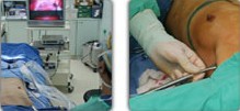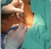醫師畫下傷口之后,藉由手術器械剝離義乳所需放置空間,剝離方式有兩種,其一為正統式剝離,以傳統的剝離器械剝離出義乳所需空間;另外則是由內視鏡儀器輔助的方式,藉由電燒方式剝離出空間。 (左圖為內視鏡儀器,右圖為正統剝離器械)